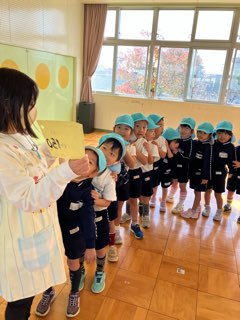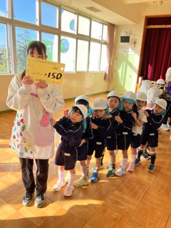 いつもは体のほぐしあそびや、ストレッチ、深呼吸や発声練習、歌あそびなどをしていますが、あれ?今日はいつもと様子が違うなあ・・・