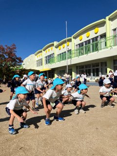 毎週水曜日は、3学年がホールに集合して遊びます。「おはようたいむ」と呼んでいます!