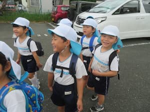 年中組さん、園外保育です。笑顔がはじけ飛んでいます!