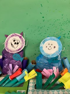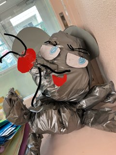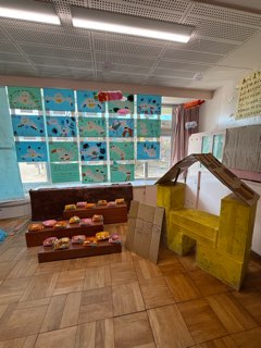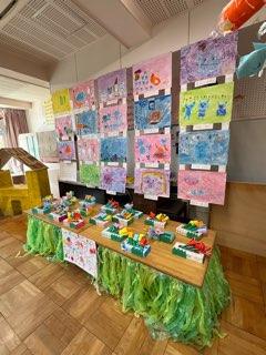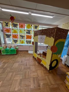 こちらのクラスも、冷蔵庫のの段ボールを再利用した大型制作が完成しています。これは・・・?