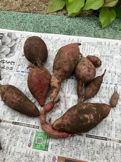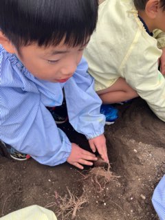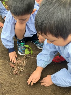 年長さんが苗植えをし、育ててくれたサツマイモが収穫の時を迎えました。