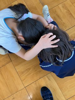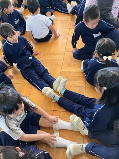 今日は、歌あそびをしたよ。歌の中で指定された場所を、くっつけるふれあいあそび